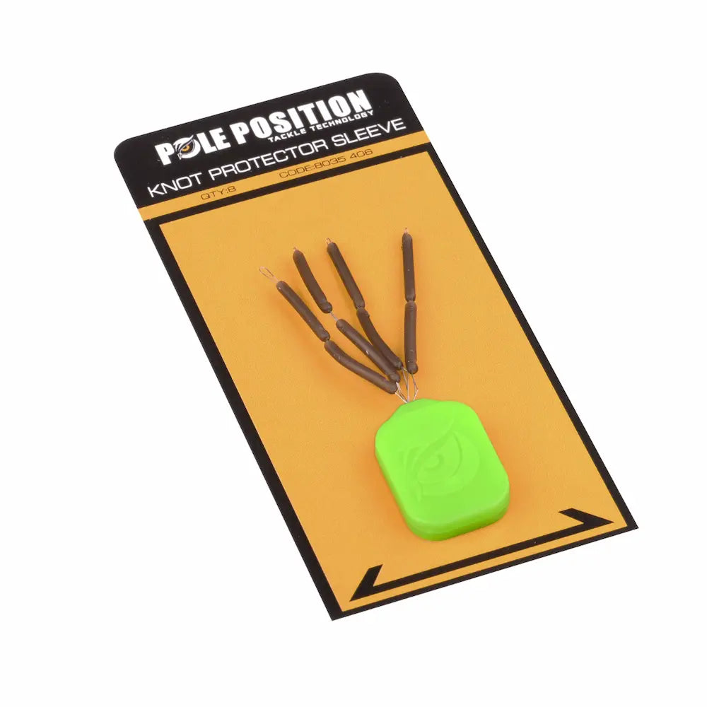 Bij het vissen met een voorslag dient deze altijd door middel van een knoop aan de hoofdlijn te worden bevestigd. Deze knoop zorgt vaak voor irritaties, vooral tijdens het werpen en uitvaren. De hoofdlijn blijft dan geregeld achter de voorslagknoop hangen en dit resulteert dikwijls in het verslepen van je lood tijdens het uitvaren of het haperen van de lijn tijdens de worp. Pole Position heeft speciaal voor dit probleem de innovatieve Knot Protector Sleeve ontwikkeld. Deze handige, subtiele sleeve kun je eenvoudig over je knoop schuiven en daarmee is het probleem van een haperende lijn verholpen. Plaats de sleeve altijd eerst op de hoofdlijn!