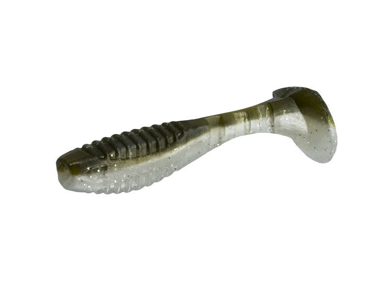 Tussen het lichaam en de staart bevinden zich drie inkepingen die zorgen voor een natuurlijkere uitstraling. Het lichaam zelf is gekarteld aan de onderzijde (buik) en aan de achterkant. Dit type oppervlak verhoogt de trilling in het water, en dankzij de inkepingen kun je altijd duidelijk zien waar je de haak moet inbrengen en waar deze eruit komt. Het inbrengen van een jig is hierdoor zeer eenvoudig. Het voorste deel van het aas (de “mond”) heeft ook een inkeping voor een betere passing met de jigkop.