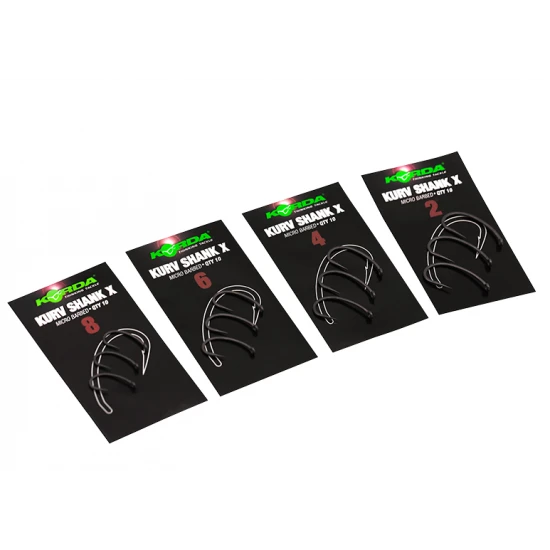 De Kurv Shank is een zeer veelzijdige haak en kan worden gebruikt met zowel pop-up als bodemaas rig, inclusief populaire presentaties zoals de KD en IQ D-rig. Hij heeft uitstekende inhakingseigenschappen dankzij een agressief naar binnen gedraaid oog en een gebogen schacht, die hem helpt om te draaien en zich vast te grijpen in de bek, zelfs als je hem zonder Shrink Tube of een Kicker gebruikt.